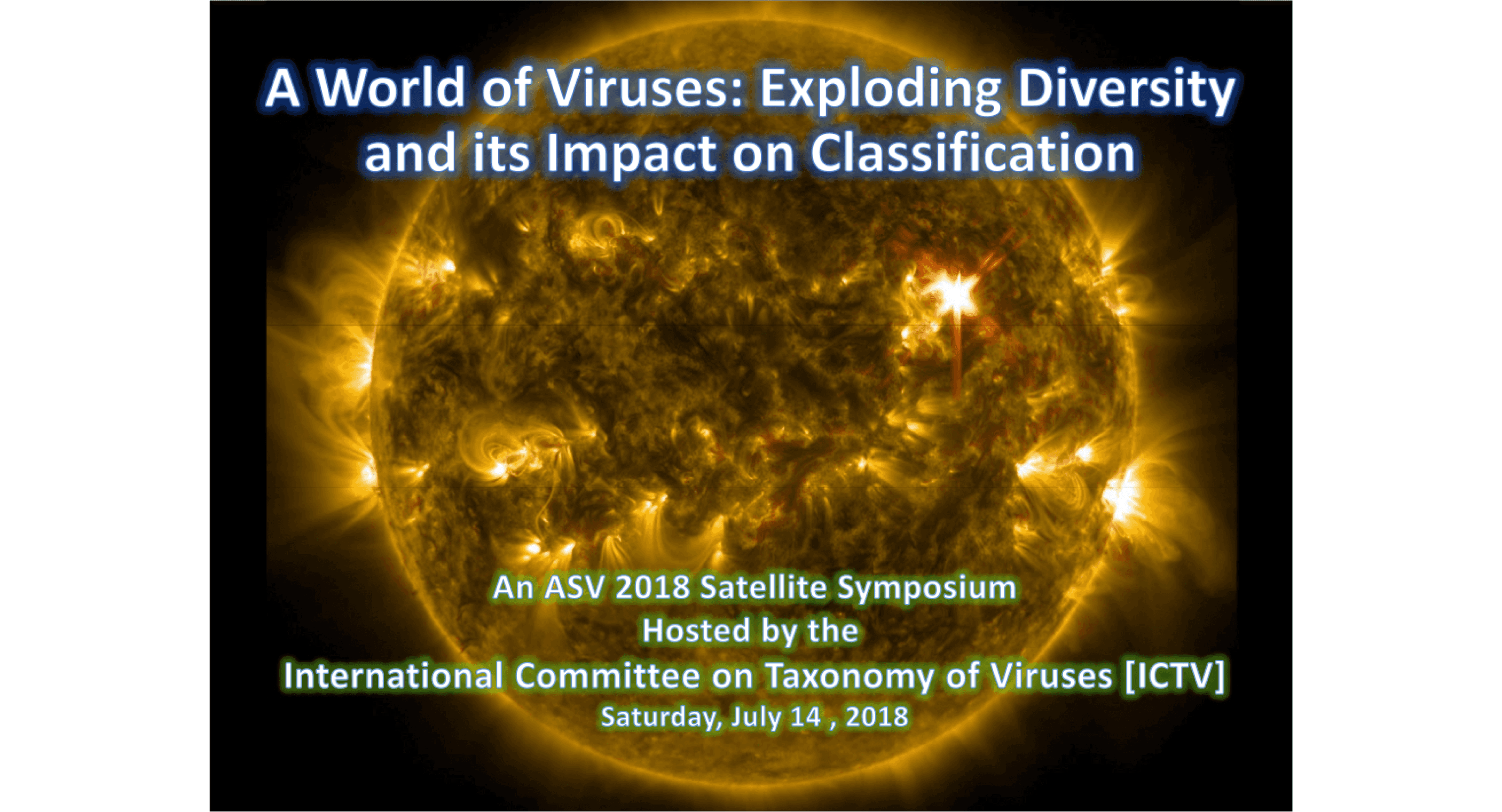 The American Society for Virology's 37th Annual meeting, held at the University of Maryland in College Park, Maryland, featured a Satellite Symposium entitled “A World of Viruses: Exploding Diversity and Its Impact on Classification.” This symposium took place on July 14, 2018, and was co-organized and hosted by Robert Harrison (USDA) and Max Nibert (Harvard Medical School), who are current members of both the ASV and the ICTV Executive Committee.