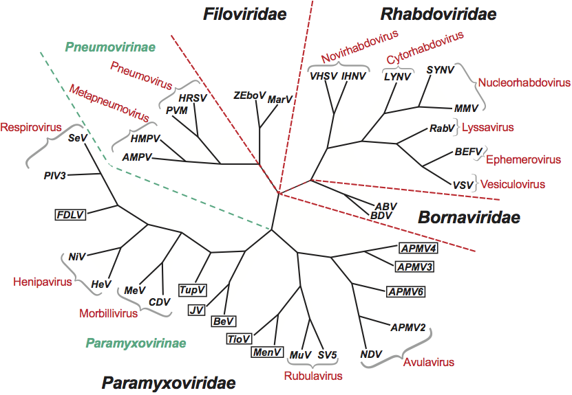 Phylogenetic relationships between the families Bornaviridae, Filoviridae, Paramyxoviridae and Rhabdoviridae are illustrated in Figure 1.