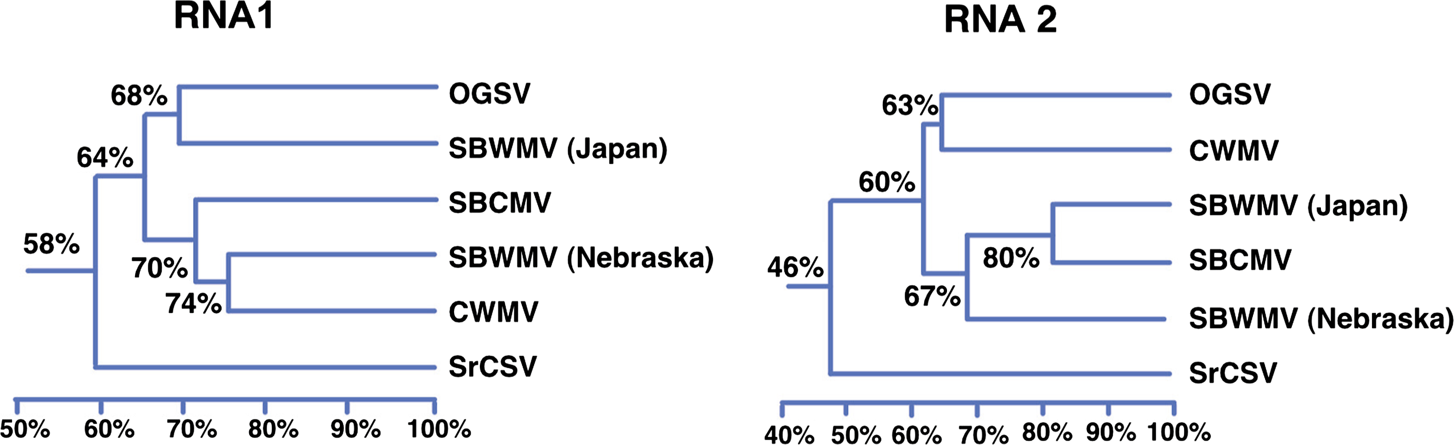 Figure 3 Percentage sequence identities of total RNAs of furoviruses.