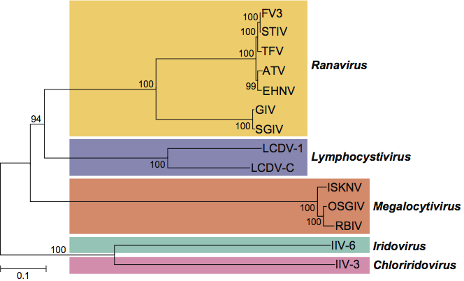 | IIV-6 | IIV-3 | ATV | TFV | LCDV-1 | LCDV-C | ISKNV |