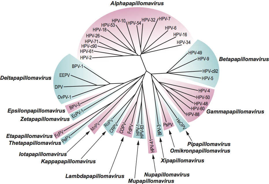 Bernard, H.U., Burk, R.D., Chen, Z., van Doorslaer, K., zur Hausen, H. and de Villiers, E.M. (2010). Classification of papillomaviruses based on 189 PV types and proposal of taxonomic amendments. Virology, 401, 70-79.
